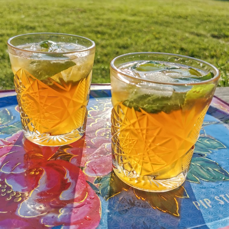 - Krossa basilikan försiktigt med händerna eller muddla den direkt i glaset. Blanda basilikan med pressad citronsaft, fläderblomssaft och öl, fyll sedan glaset med is.