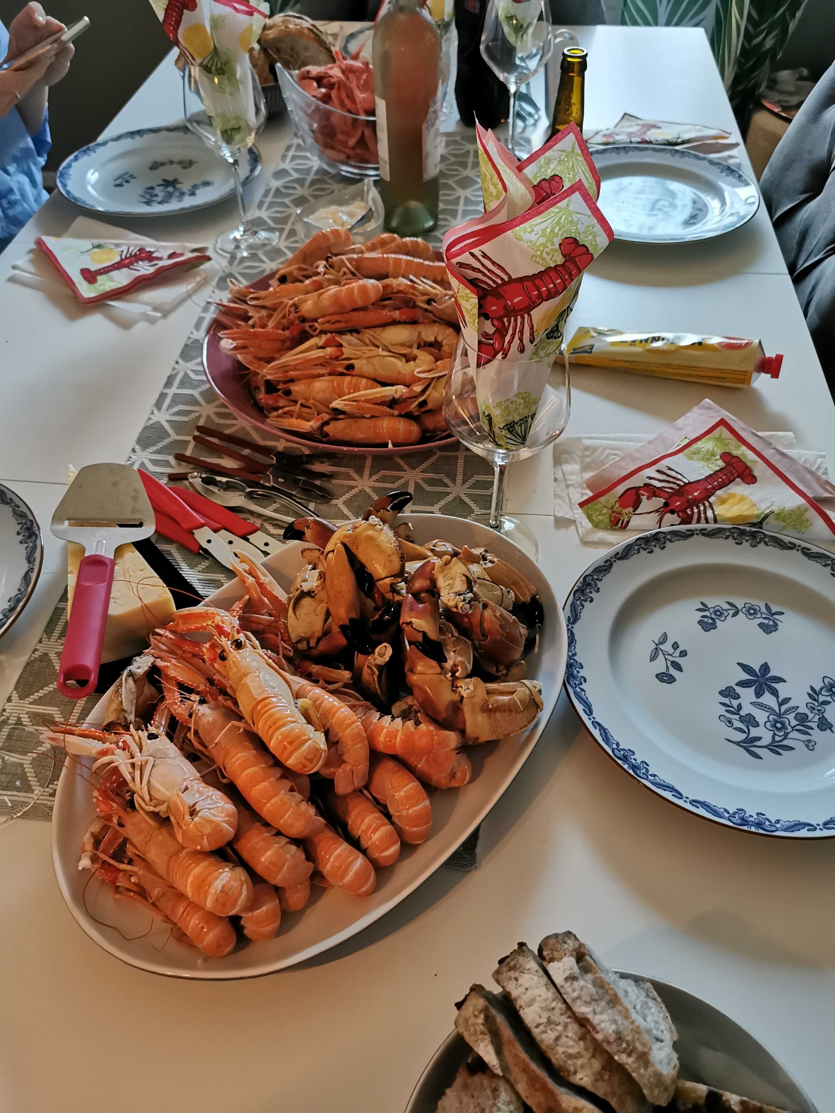 Hur gott är det inte med skaldjur? Min svärmor var och hälsade på i helgen och med sig hade hon ett stort lass med havskräftor, räkor och krabbklor från Västkusten. Ett mycket trevligt och välkomnat initiativ. För första gången någonsin tog jag mig i kragen och tog tillvara på skalen från ovannämnda skaldjur och kokade ihop en fond.